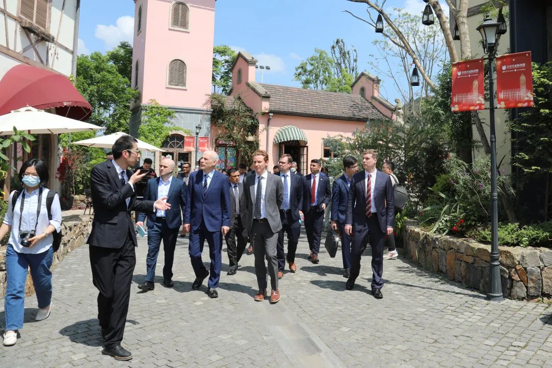 外国领团一行还参观了芙楽小镇商业街的阿维尼翁酒馆、凯莉香社等法式风情空间,亲身感受项目基于国际合作开展的一二三产融合发展实践。中法合作造就的累累硕果给外国领团一行留下了深刻印象,嘉宾们纷纷表示:有中法农业科技园这样的国际合作典范在前,相信未来将会有更多国际合作融入到成德眉资同城化发展之中。